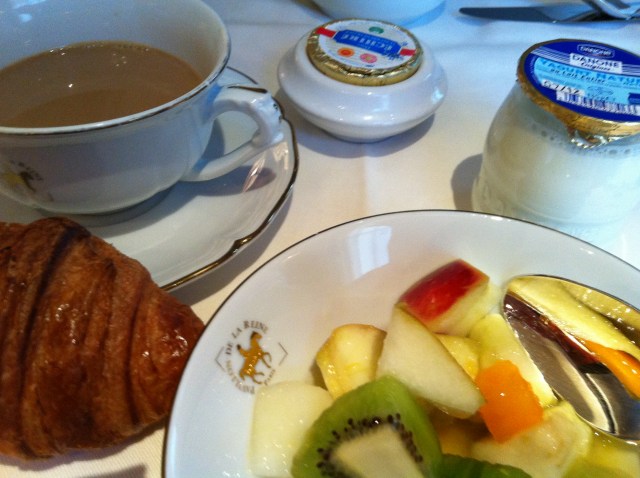 Nice to wake up to: Very buttoned down hotel coffee, like this classic scenario at Pavilion de la Reine next to Place des Vosges, Paris.