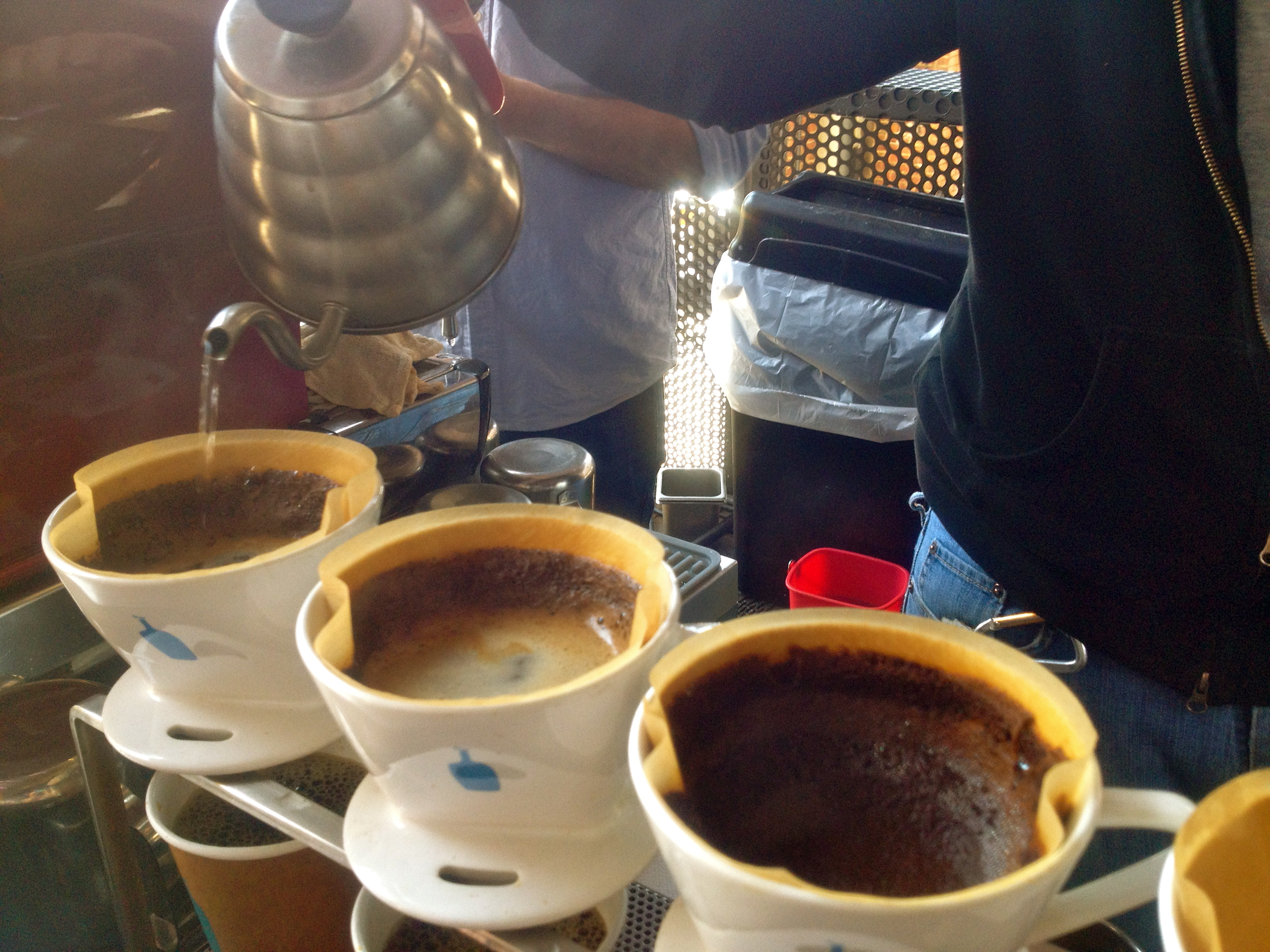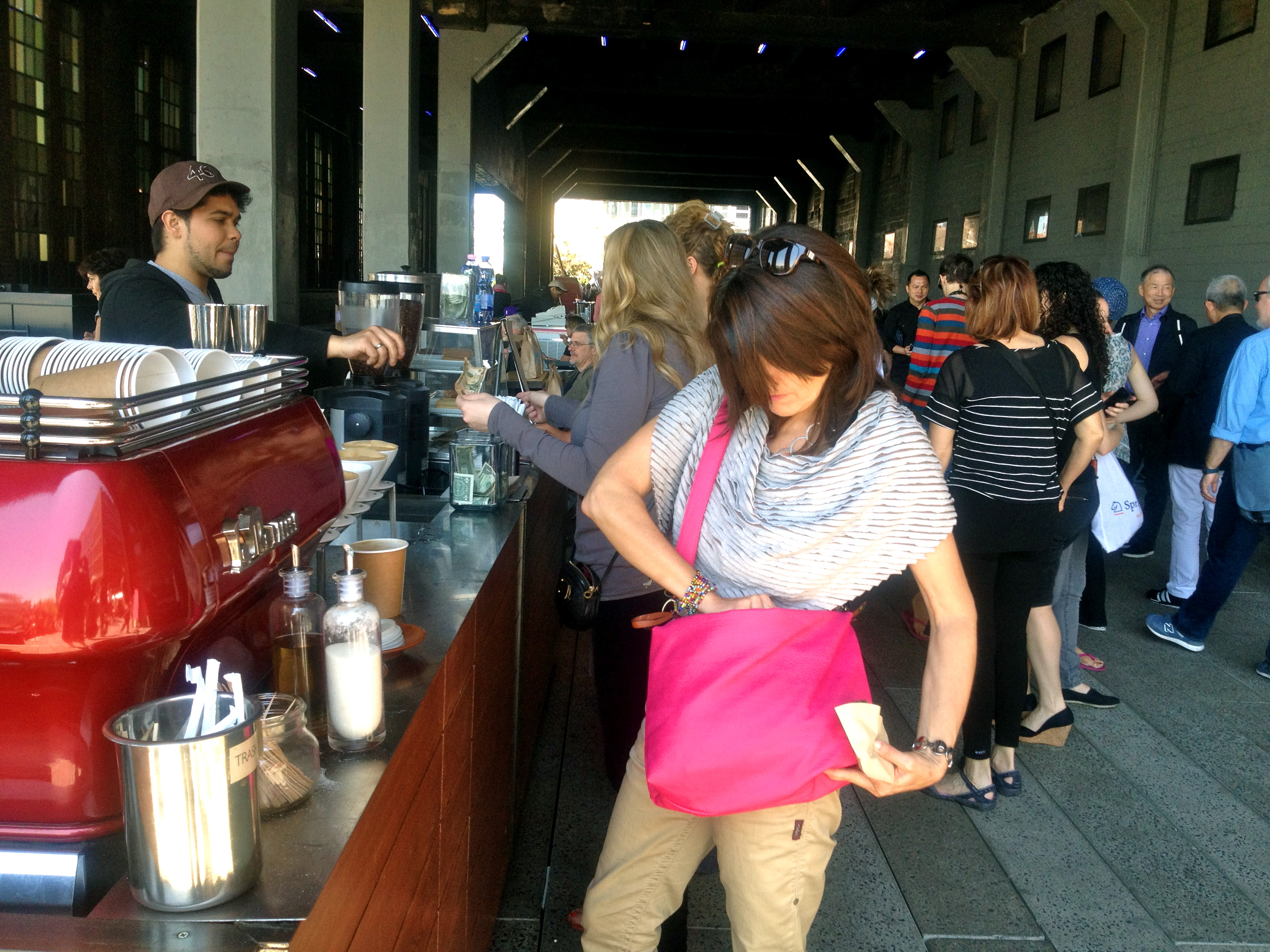 Lining up last week for some fresh brew at the coffee cart on the elevated High Line park in NYC’s Meatpacking District. Perfect pours by unhurried baristas, despite the million or so visitors walking the High Line each year.