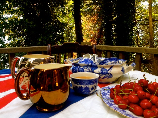 After beach volleyball and paddleboarding, the long weekend at Lake Huron was spent luxuriating with Tim Horton’s stored in a big tin and pulled out of a cedar cupboard. Savoured in blue willow cups with vintage hand-stitched flag from Ontario.