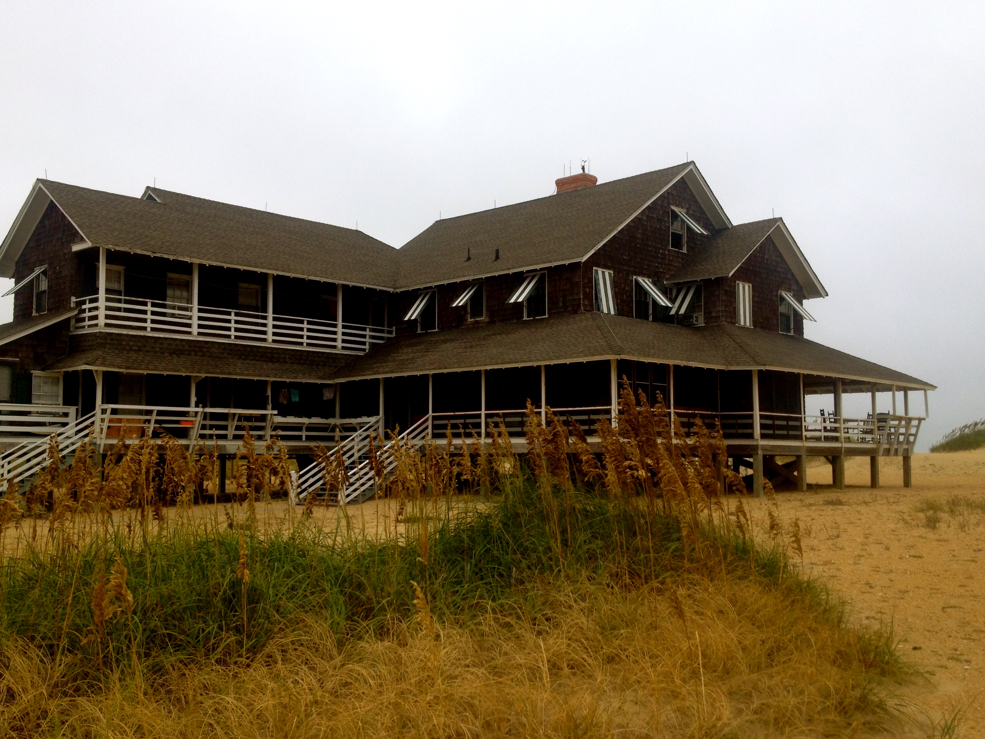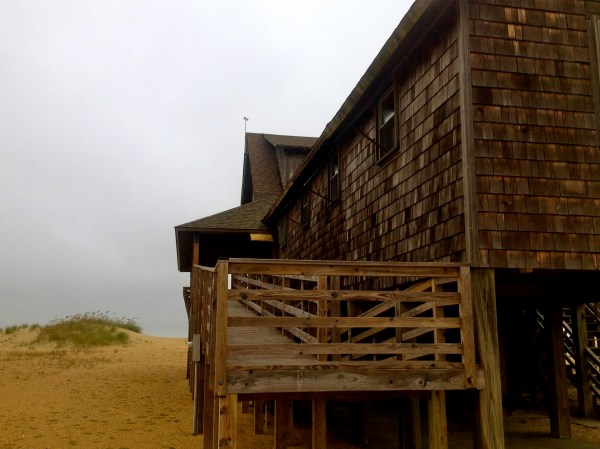 Across the beach road in Nags Head, a series of shingled black ghosts built during the 19th century; wood weary and structurally forgiving, set next to the surf, daring the hurricanes to come and get them.