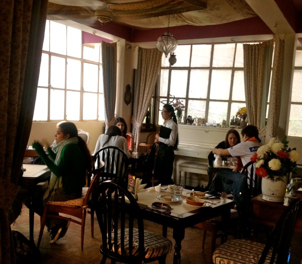 Hauz Khas is a hip, designer-rich, walkable neighbourhood – a rare find in India. Our apartment, rented via Air bnb, allowed views to the Mughal-era complex but also, at ground floor, to men hauling wooden carts travelling along the narrow streets along with school children in uniforms who would sometimes stop to say a prayer in front of the neighbourhood Hindu shrine. This tea salon discovered up a steep flight of stairs, next to a bakery.