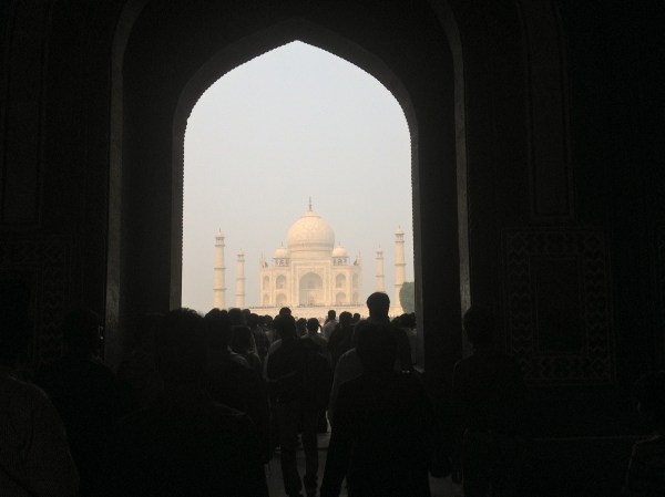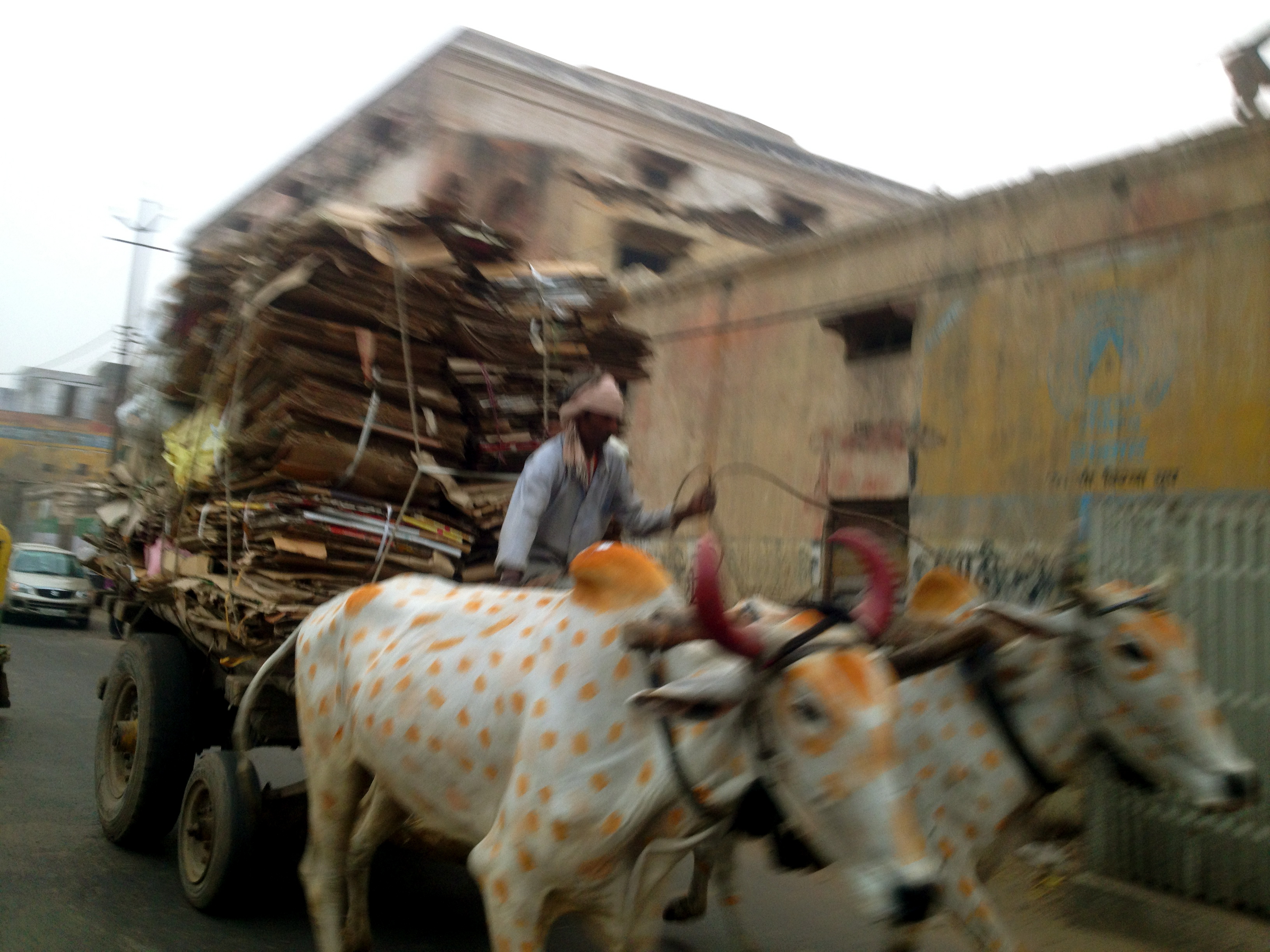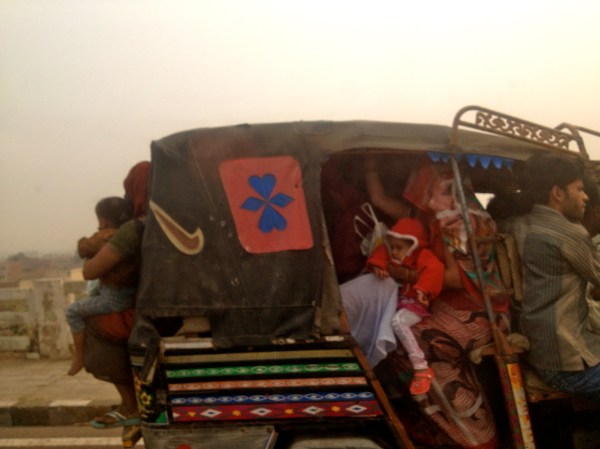 Through the dust, heat and travelling at high speeds…view from a crowded rickshaw, en route to the Taj Mahal.