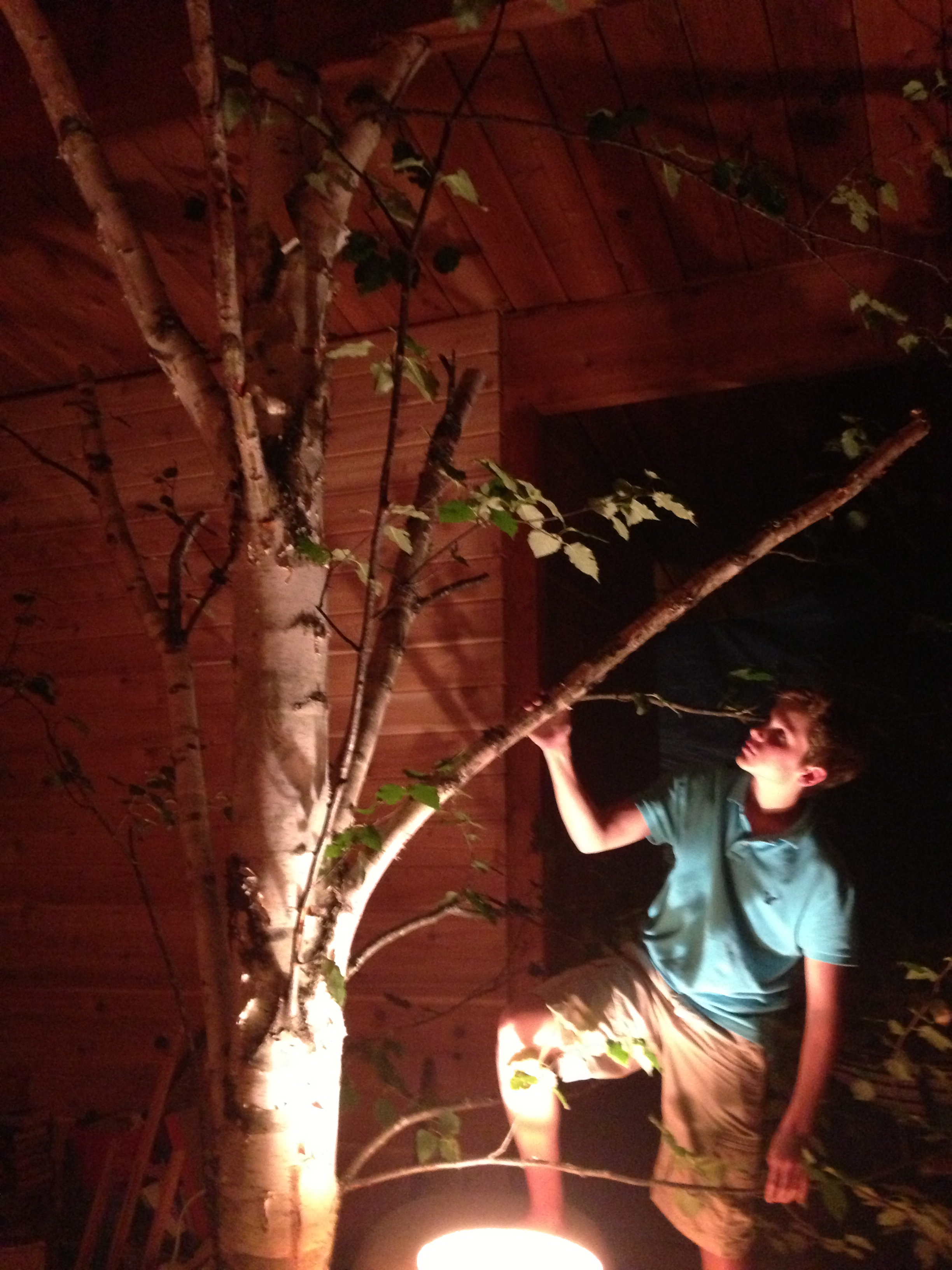 At our cottage, there was a hope and a dream to honour a canoe birch (paper white birch) by installing it within the interior. The tree was miraculously found by our contractors after a major wind storm up north and installed with branches and leaves intact. Which we loved, of course. even if it meant crawling through the branches as if we were living in a forest.